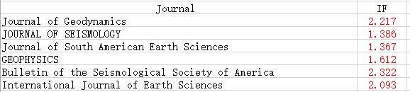 本人想投一篇SCI检索的地球物理英文期刊,内容属于地震学,第一次投稿,经验不足,想快点发出去。影响因子介于弱三区和四区之间,请问大家有推荐的没?我搜了几个,请问图片中第六个有熟悉的吗? LN_UXQHK0NA7OX{BO6XQ$YL.jpg |