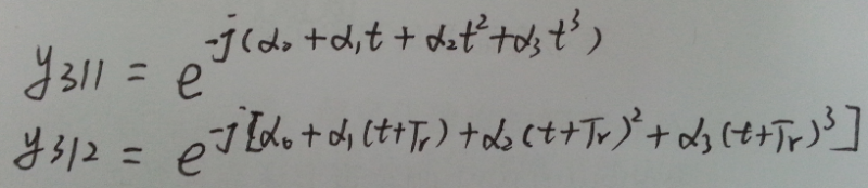 先上有问题的程序代码如下: 如上,y311是关于t的三次项相位信号表达式,y312是y311延时Tr后的表达式(两者形式如右 |