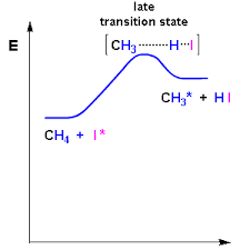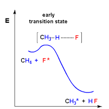 The cyclopropanation step in reactions with both the diazo compounds 1 and 2 is highly exothermic, and the transition states are expected to be very early.请解释下这句话是什么意思,什么叫预期过渡态很早? |