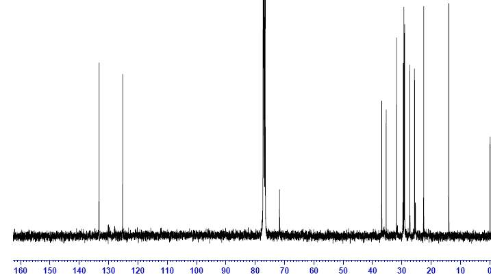 蓖麻油酸锌((9Z,12R)-12-羟基-9-十八烯酸锌盐(2:1)),溶于CDCl3中测碳谱,不出羰基的峰,连着羰基的几个碳都没有峰,是什么原因导致的,而用酸化后成蓖麻油酸后,用CDCl3萃取后,有蓖麻油酸的全部出峰? BMY.JPG |