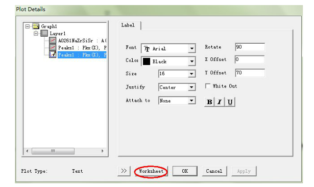 请教大家一个问题 用origin8 分析xrd图中面间距时点plot details时出不来worksheet 怎么回事啊 1图片是我在网上看到的 2 是我自己根据步骤调出来的 就是出不来