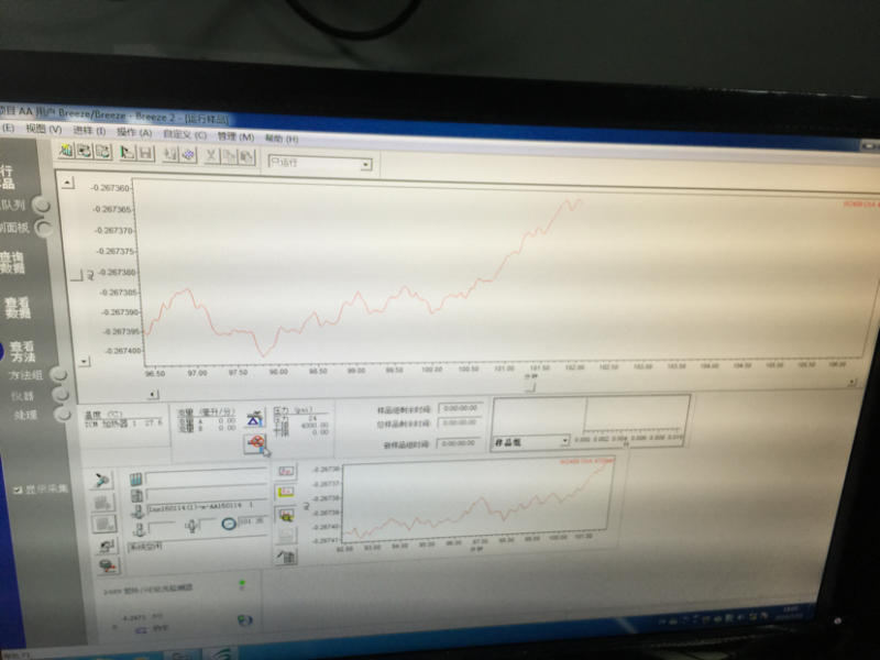 流动相每天都有超声,仪器学校并没有配在线脱气装置(学校死穷啊),本来我也怀疑是有气泡才产生的这种震荡的图,但是之后一直用乙腈监视着,如下图,这也是系统有气泡的原因吗?新手啊~如果系统进气泡了,咋办呢? 发自小木虫IOS客户端 |