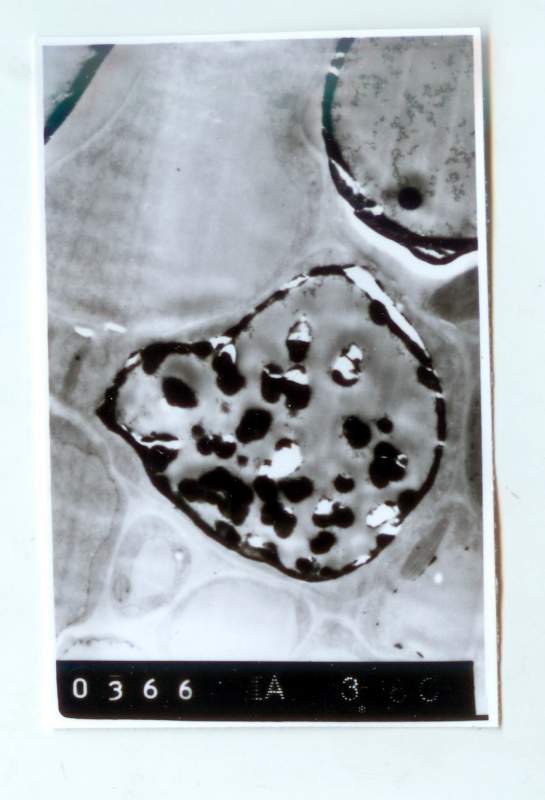 请高手帮审核一下图片中的液泡内的黑色小泡及围绕液泡一周的黑色带是不是污染造成的?