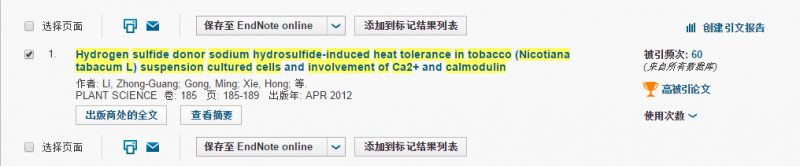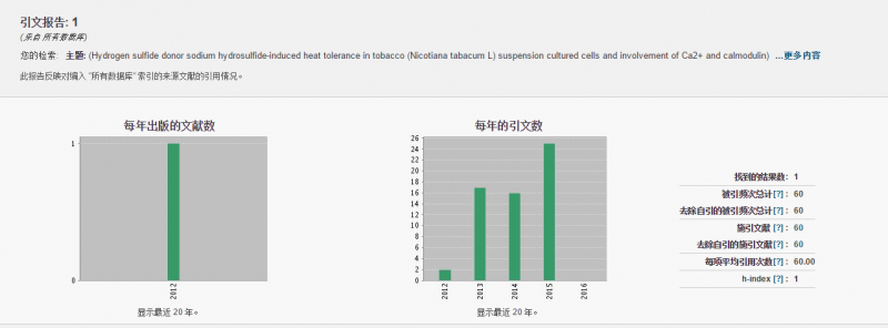 求助是否为高引论文,提供截图! Hydrogen sulfide donor sodium hydrosulfide-induced heat tolerance in tobacco (Nicotiana tabacum L) suspension cultured cells and involvement of Ca2+ and calmodulin |