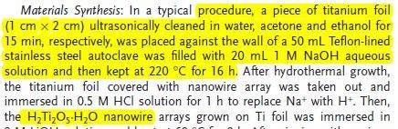 各位蟲友好 我仿照文獻要合成titanate nanowire, 使用Ti foil + 1M NaOH 水熱條件下想要合成H2Ti2O5. 但合成出?淼牟牧嫌肵RD分析卻和文獻不同, 且和出?淼臇|西?K非H2Ti2O5, 但我使用Jade又找不到相對應的材料. 麻煩請蟲友幫解一下, 看這材料是什麼東西, 感激不盡~ 1111.JPG |