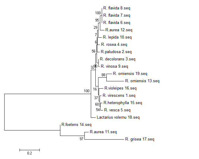 真菌系统发育树,作为外类群的乳菇与红菇属聚在了一起已有1人参与