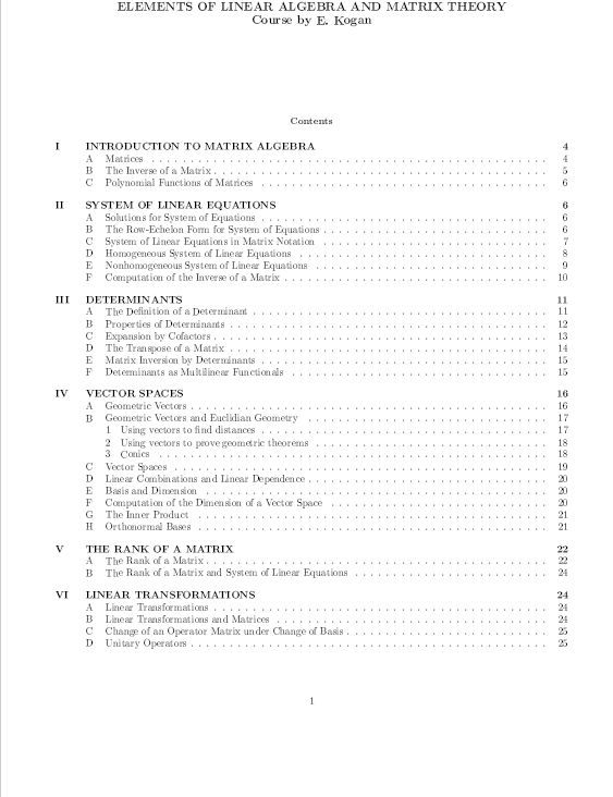 Elements of Linear Algebra and Matrix Theory-course by E. kogan