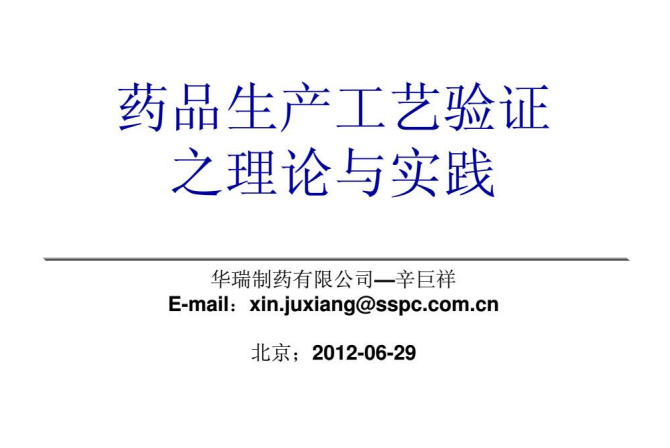药品生产工艺验证之理论与实践—辛巨祥(华瑞)2012.6.29