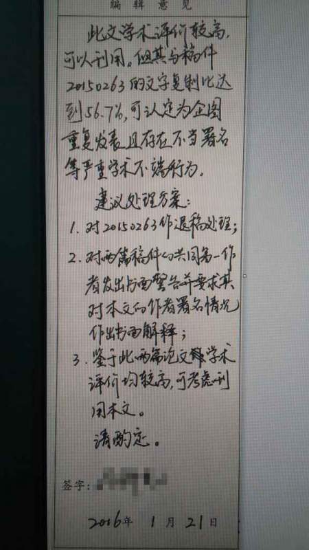 如图,换几个作者改改语言表述就再次投稿,居然还投同一家杂志,并且在前一篇稿件已经通知刊用之后。 对于如此猖狂的作者大家认为该怎样处理? 发自小木虫Android客户端 |