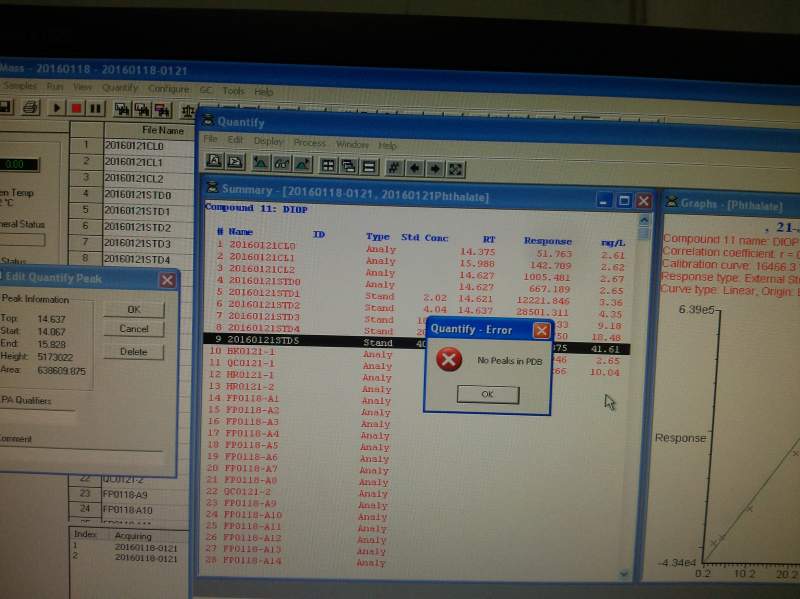 GC-MS工作曲线手动积分后显示“No peaks in PDB”是什么问题?