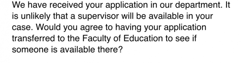 今天申请的学院老师发来这样一封邮件,大家帮忙分析是不是委婉地在拒绝我。 发自小木虫IOS客户端 |