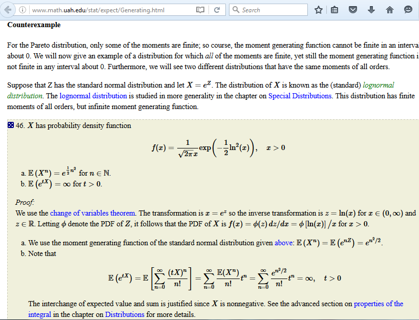 http://www.math.uah.edu/stat/expect/Generating.html 所有阶的Moments都存在且有限,但 Generating function 处处是无穷大 Emuch030 moment generating function.png |