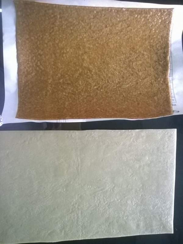 第一次做EVA发泡,VA含量20%左右,100份,AC 3份,滑石粉5份,硬脂酸锌0.6份,交联剂0.5份,在开炼机混合开片,温度90度左右,然后在150度烘箱烘烤1h,没有发泡的迹象,温度160度也没有发泡迹象,温度达到180度,旗袍很少,且材料变成黑黄色,有焦烧的迹象,求解释求帮助!谢谢! 第一个是高温后的,第二个是没烘烤过的.jpg |