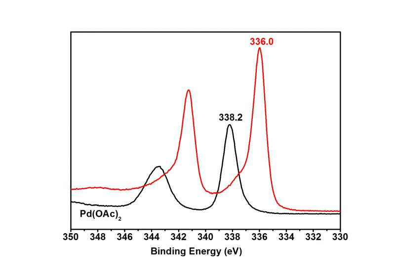 你刚开始是Pd离子,后来经过煅烧还原步骤了吗?看图是变成Pd单质或PdO了