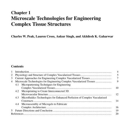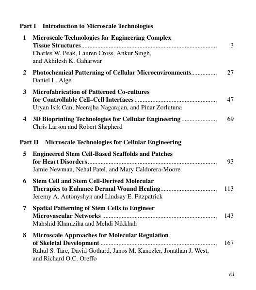 Microscale Technologies for Cell Engineering Editors: Ankur Singh, Akhilesh K. Gaharwar ISBN: 978-3-319-20725-4 (Print) 978-3-319-20726-1 (Online) |