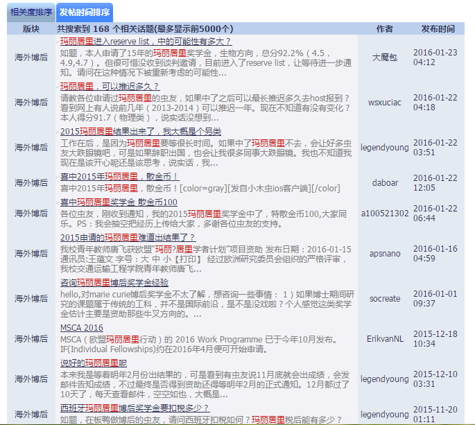 近日突然看到有几人因喜中玛丽居里散金币。甚是好奇!然后通过这个关键词网上一搜索,发现这个跟洪堡基金和JSPS基金属于同类。进一步在木虫站内搜索却发现这个申请中的人就那么几个,不知道这个基金是个申请样的基金,是不像洪堡JSPS那样有名,还是其它原因,期待知情人士给予解惑! 站内搜索结果见附件~! 玛丽.png |