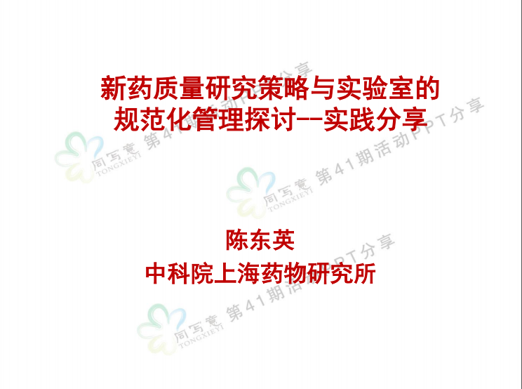 新药质量研究策略与实验室的规范化管理探讨--实践分享—陈东英2015.11
