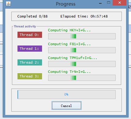 求问用jmodeltest建模型一直是0%是什么原因呢?已有1人参与