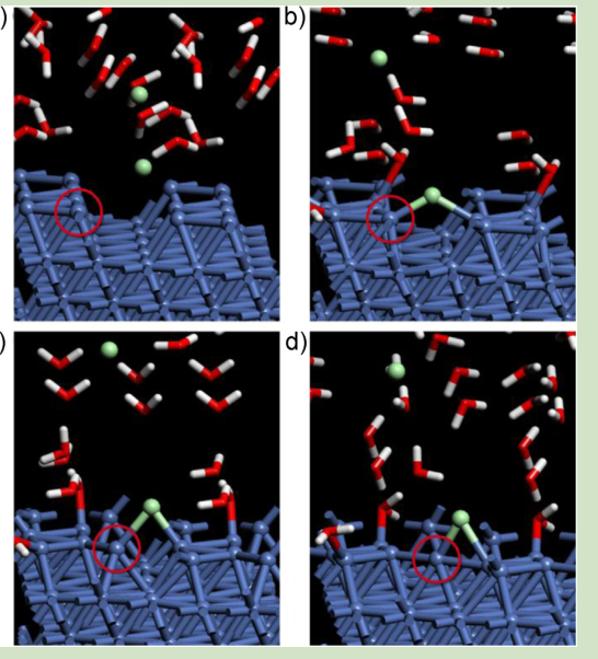 第一张图片是文献中看到的,第二张是自己模拟的,但是我模拟的为什么cl原子没有和下面的成键,我很郁闷。 我的模型是这样建立的:1模型是先建立fe晶体模型,2再用ac建立包含cl原子和ca原子和水分子的模型,3再用build layer放在一起 4用forcite跑动力学,大家看看我哪里错了? .png KEVZFGIA7T@5Z[QAJ{)Q]L9.png@oxox6085@smutao |