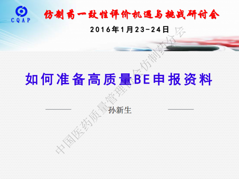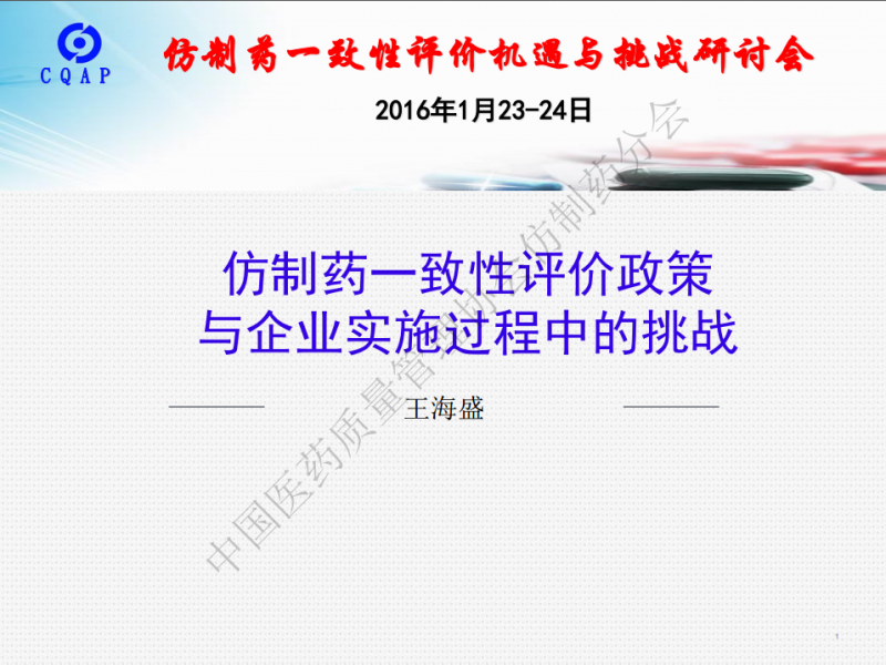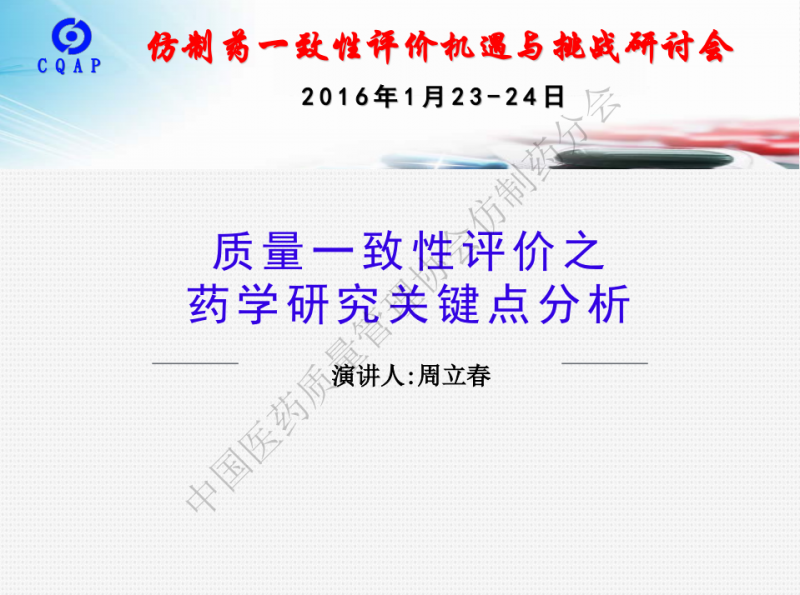 本内容由用户自主发布,如果其内容涉及到知识产权问题,其责任在于用户本人,如对版权有异议,请联系邮箱:xiaomuchong@tal.com - 附件 1 : 仿制药一致性评价机遇与挑战研讨会课件2016.1.23~24(北京)CQAP.rar