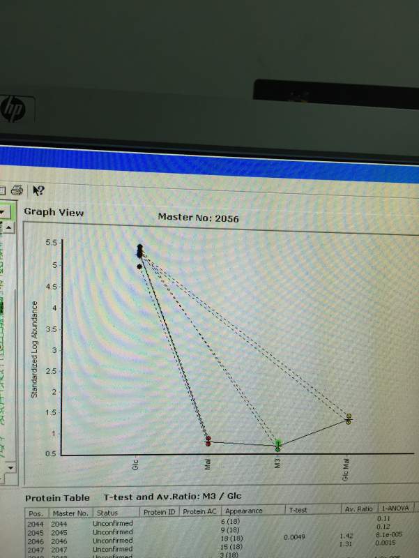 跑了2D-DIGE的胶,Glc是实验组,Mal、M3、Glc Mal 是实验组,BVA分析做了Glc 和 M3的差异分析,但是这图里为什么四个样都会标示出来?纵坐标是什么意思?是指表达丰度吗?求赐教~~~~ IMG_1757.JPG |
