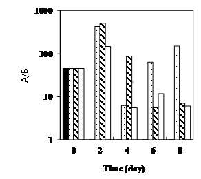 论文投稿,被拒。其中一个审稿人要求在一张图上添加标准误差或标准偏差线,措辞极为严厉。本人想修改后转投其他期刊,但是思路还是理不顺,请各位虫友不吝指点。 原图如下,是一张比值图,A和B是直接测定值的平均值,测定时各取三个平行样,请问这种图要怎么表示标准误差合适。 88.jpg |