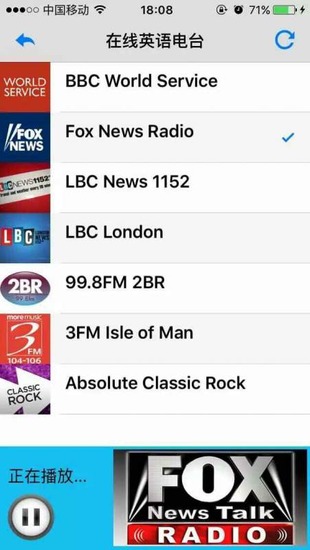 福克斯广播公司(FOX Broadcasting Corporation),总部位于美国洛杉矶,成立于1986年,老板是著名大亨默多克。 1990年始播新闻节目,现在已经成为美国第一大新闻频道。《X档案》和《越狱》等节目就是由福克斯出品。 FOX福克斯广播节目语速与在线CNN广播电台差不多,内容上大同小异,包括访谈、对话、新闻追踪、国际时政等,美式发音。 http://www.fltaradio.com/english/328-fox-news.html Fox News Radio参考节目表(可能会有变化,纽约时间就是美国东部时间):点击看大图 http://src.fltacn.com/image/fox-news-radio-schedule.jpg |