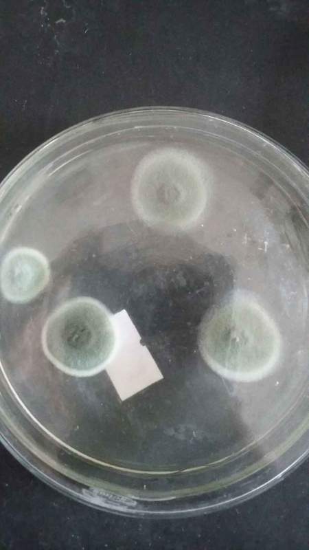 从腐烂的柚子皮上分离出来的,菌落开始是白色,后产生绿色孢子,菌落很致密,孢子比较难挑起,载片观察中菌丝有隔,后期观察到有成串的孢子 发自小木虫Android客户端 |