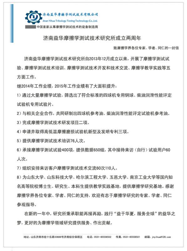 济南益华摩擦学测试技术研究所成立两周年 已有4人参与