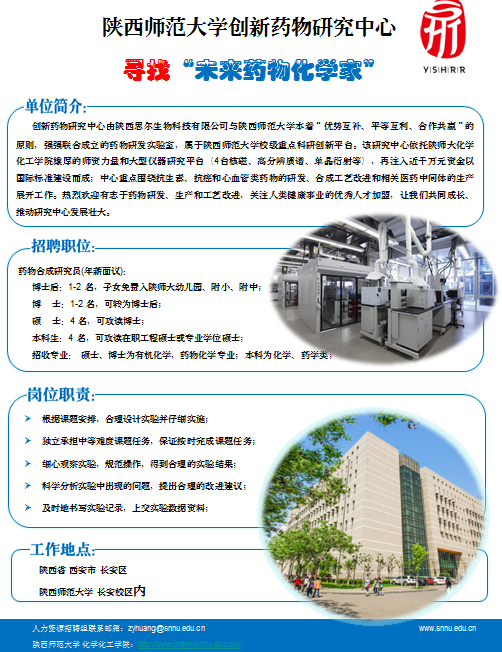 本内容由用户自主发布,如果其内容涉及到知识产权问题,其责任在于用户本人,如对版权有异议,请联系邮箱:xiaomuchong@tal.com - 附件 1 : 陕西师范大学_创新药物研究中心招聘.pdf