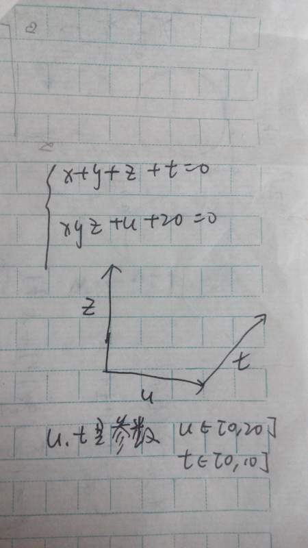 如图,u,t是参数,x,y,z是其中变量,他们受一个方程组约束,想画出z随u,t变化的图形(方程组里方程数目不够的话可以增加的)