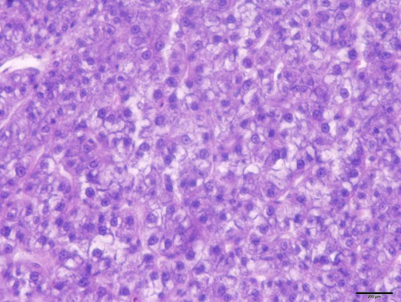 高倍镜下观察的鱼肝脏切片样,本人的专业是水产养殖,看不出片中区别,还请大家帮忙解答