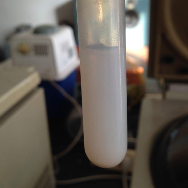 我需要用去离子水将粉体洗若干次,直到粉体呈中性。在前两次洗完离心后,液体部分是十分澄清的,但从第三次过后,液体部分就开始变得浑浊,求解释。
