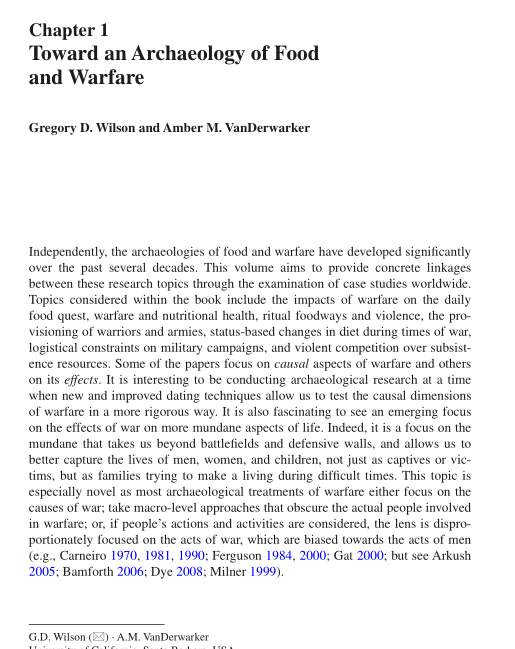 The Archaeology of Food and Warfare Editors: Amber M. VanDerwarker, Gregory D. Wilson ISBN: 978-3-319-18505-7 (Print) 978-3-319-18506-4 (Online) |