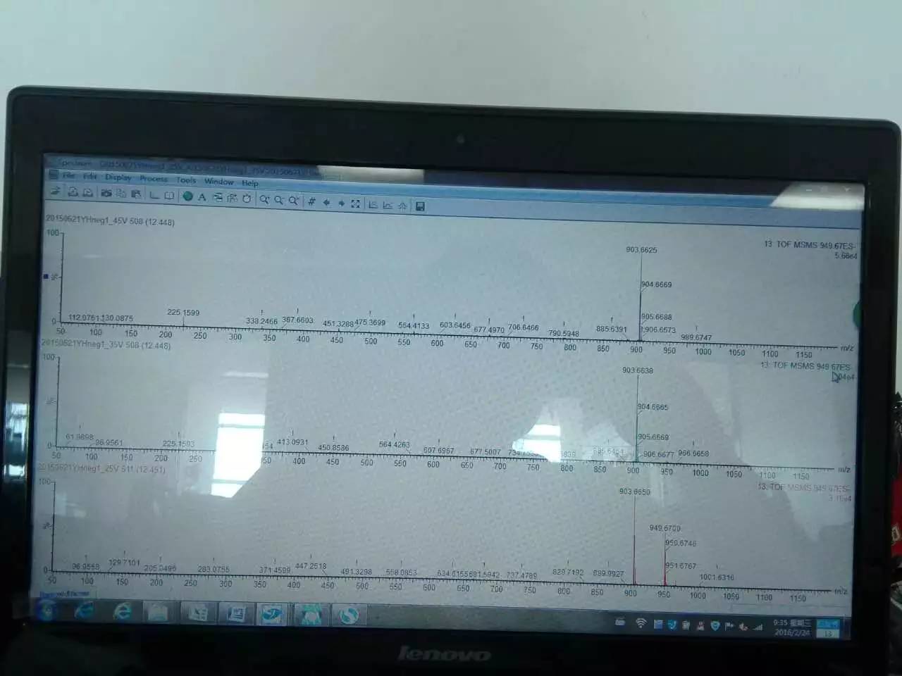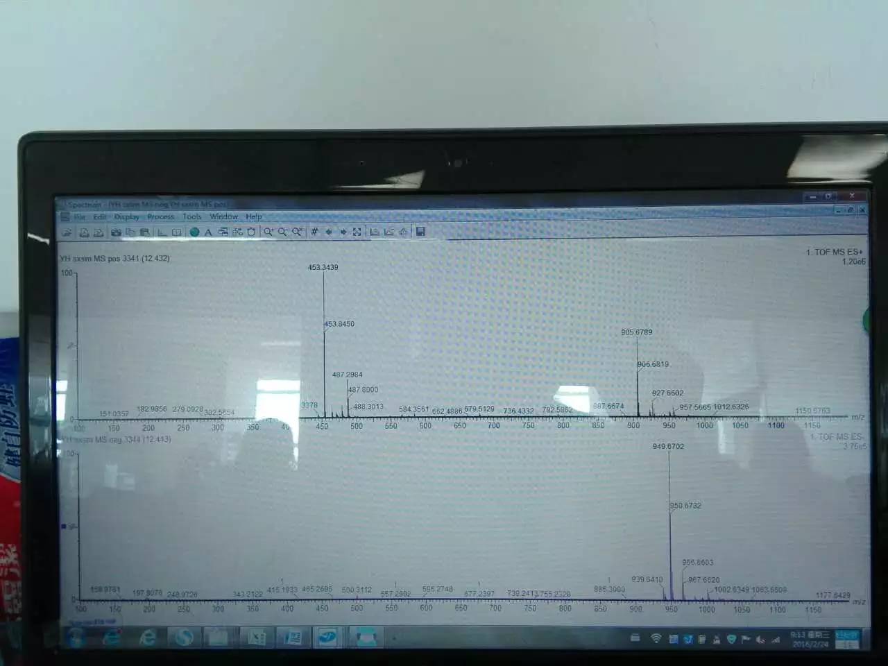 这是口服液质谱分析中的一个峰,峰型很好,根据口服液中化学成分的比对,没有解析出来,问问大家根据一级二级质谱分析能不能解析出大致的结构类型或者分子结构?上次求助的分子离子峰,大家有人说905有人说453,这次给出二级质谱图,个人觉得像905,大家觉得呢![]() |