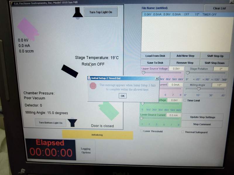 求助离子减薄仪Fischione Model 1010 启动出问题