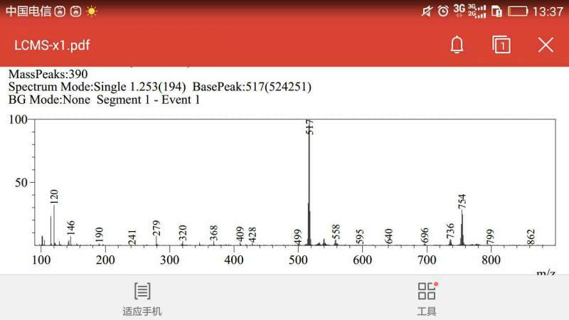 ESI源,液质联用,分子量256,C12H10O3B2 发自小木虫Android客户端 |