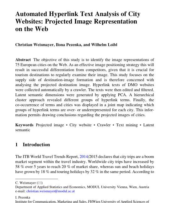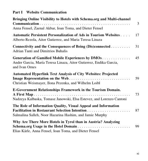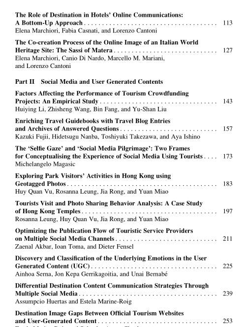 Information and Communication Technologies in Tourism 2016 Editors: Alessandro Inversini, Roland Schegg ISBN: 978-3-319-28230-5 (Print) 978-3-319-28231-2 (Online) |