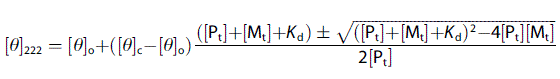 急求,如何在origin如何使用最小二乘法模拟以下公式?其中[Θ]0,[Pt]为已知数,在不同[Mt]值下测定[Θ]222,拟合曲线得解离常数Kd与[Θ]c。谢谢各位帮忙,求详细指导! Capture.GIF |